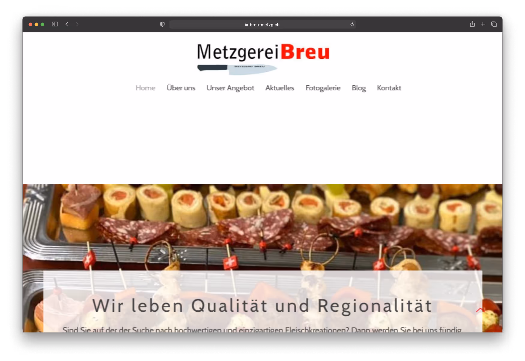Webauftritt für die Metzgerei Breu – ein Familienbetrieb in dritter Generation aus Neunkirch/SH. Seit 1931 steht der Name Breu für regionales Fleisch und handwerkliche Qualität. Die neue Website macht diese Tradition digital erlebbar: hausgemachte Spezialitäten, wöchentliche Mittagsmenüs und der beliebte Partyservice werden übersichtlich präsentiert und für lokale Kunden in der Region Schaffhausen optimal auffindbar gemacht.